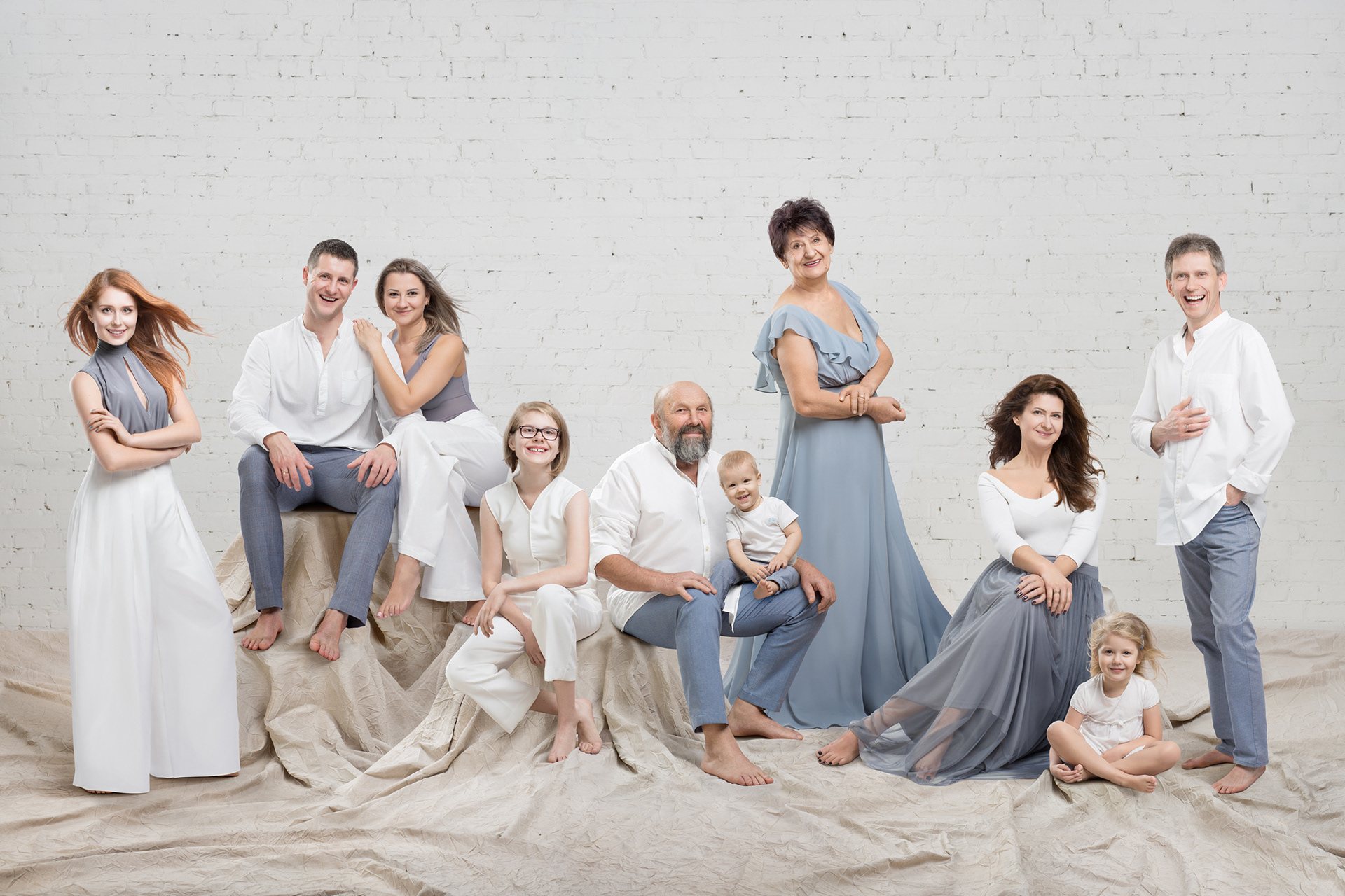 There is no set time for the photoshoot: I am there for you all day, along with the stylist, makeup artist, and hairdresser who are present in the studio. We want everyone to look and feel their best for the photograph, so the experience includes the aid of a full team to ensure that every detail is just right. While one family member is preparing for the shoot, another is being photographed and the others can bond, awaiting their turn.