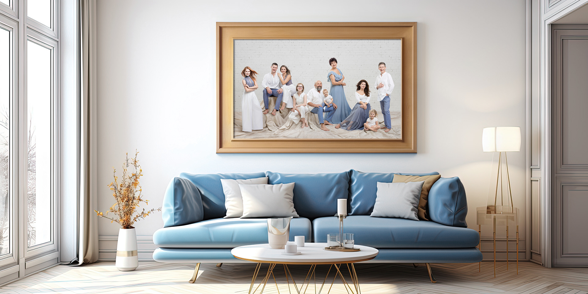 -One framed high-quality print of the final family portrait (70x100cm)